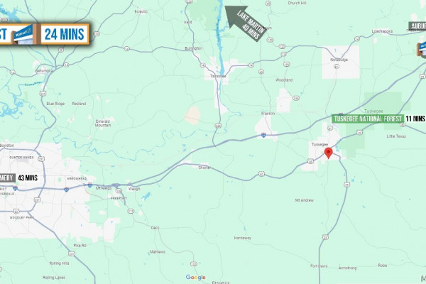 PROPERTY/LOT 2: Nestled just south of historic downtown Tuskegee, Alabama, this 4.05 acre lot offers a serene and versatile setting perfect for residential or recreational use. Offering secluded driveway access that dead ends into at least an acre of flat, cleared, buildable land, free from floodplain concerns. The remainder of the lot transitions into a lush meadow of mature trees and vibrant wildflowers closer to the road. All necessary utilities are available, including power, water, and sewer, with no restrictions, opening up a world of building opportunities. The area is known for its low taxes, abundant wildlife, and proximity to cultural sites and outdoor activities, making it an ideal investment for those seeking both tranquility and convenience. As one of the largest man made lakes in the country, Lake Martin, just 40 minutes north, is the region’s largest draw for outdoor adventure, with 44,000 acres of clean, clear water, hundreds of miles of hiking trails, and a huge selection of campsites. For daily necessities and conventional dining, Tuskegee offers a lot of options, including a Walmart, Piggly Wiggly and Family Foods.