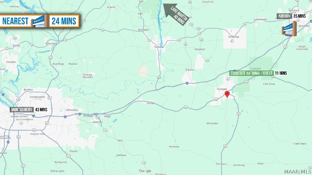 PROPERTY/LOT 2: Nestled just south of historic downtown Tuskegee, Alabama, this 4.05 acre lot offers a serene and versatile setting perfect for residential or recreational use. Offering secluded driveway access that dead ends into at least an acre of flat, cleared, buildable land, free from floodplain concerns. The remainder of the lot transitions into a lush meadow of mature trees and vibrant wildflowers closer to the road. All necessary utilities are available, including power, water, and sewer, with no restrictions, opening up a world of building opportunities. The area is known for its low taxes, abundant wildlife, and proximity to cultural sites and outdoor activities, making it an ideal investment for those seeking both tranquility and convenience. As one of the largest man made lakes in the country, Lake Martin, just 40 minutes north, is the region’s largest draw for outdoor adventure, with 44,000 acres of clean, clear water, hundreds of miles of hiking trails, and a huge selection of campsites. For daily necessities and conventional dining, Tuskegee offers a lot of options, including a Walmart, Piggly Wiggly and Family Foods.