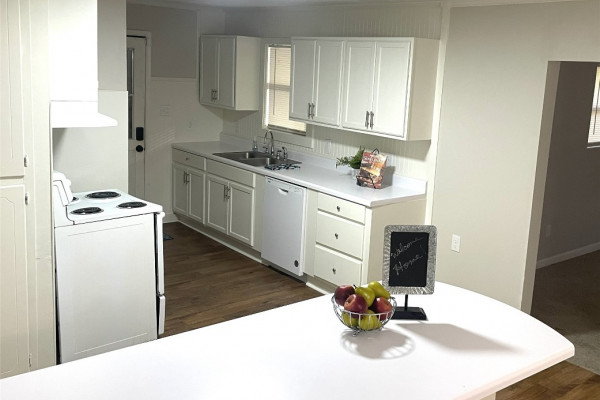 Beautifully Updated Home in a Convenient Rural Setting. This updated 4-bedroom, 2-bath home offers the perfect combination of peaceful rural living and convenient access to nearby shopping and city amenities. Situated on a spacious half-acre lot, this property provides room to relax and enjoy both comfort and functionality. The welcoming covered front porch leads into a bright front living room that includes a mounted television, which conveys with the property. The kitchen is open to the breakfast area, and the table also conveys, making it easy to move right in and start enjoying your new space. In the front living room and kitchen, new vinyl plank flooring adds a modern touch and durability. Both bathrooms have been tastefully updated, and the home features two comfortable living areas—perfect for gatherings or quiet evenings. The large den includes a convenient pass-through to the breakfast room, enhancing the open and connected layout. The fully fenced yard—both front and back—offers plenty of space for outdoor activities, pets, or gardening. The attached two-car garage provides ample covered parking. This property is an excellent opportunity as either a family home or an investment. Its blend of updated features, generous lot size, and convenient location make it a standout choice.