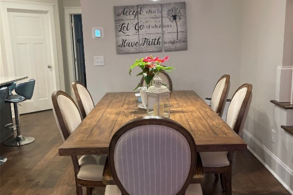 Welcome to The Orchards. This freshly painted, immaculate 4-bedroom, 3-bath home offers an open floor plan with many fantastic features. Downstairs, you are greeted with an open floor plan featuring a large family room, an updated kitchen with stainless steel appliances, and a guest bedroom on the first floor. There is a separate breakfast and a gas log fireplace with a beautiful mantle. The upstairs has three bedrooms and 2 baths. Enjoy your morning coffee on your private balcony overlooking the neighborhood from the master’s bedroom. with vaulted ceiling & modern ‘en suite’ bath w/ split vanities, garden tub & separate shower, + large walk-in closet. Also featured is a 2-car GARAGE with extra parking in the rear. The Orchards provide additional amenities, including a community pool, green space, playgrounds, and ponds. Pike Road Elementary School is also just a two-minute walk, and The Orchards Clubhouse has amenities such as a neighborhood pool, splash pad, park & playground & much more. NEW DISHWASHER, NEW MICROWAVE, AND NEW HOOD VENT – ALL IN 2024. The refrigerator does not stay.