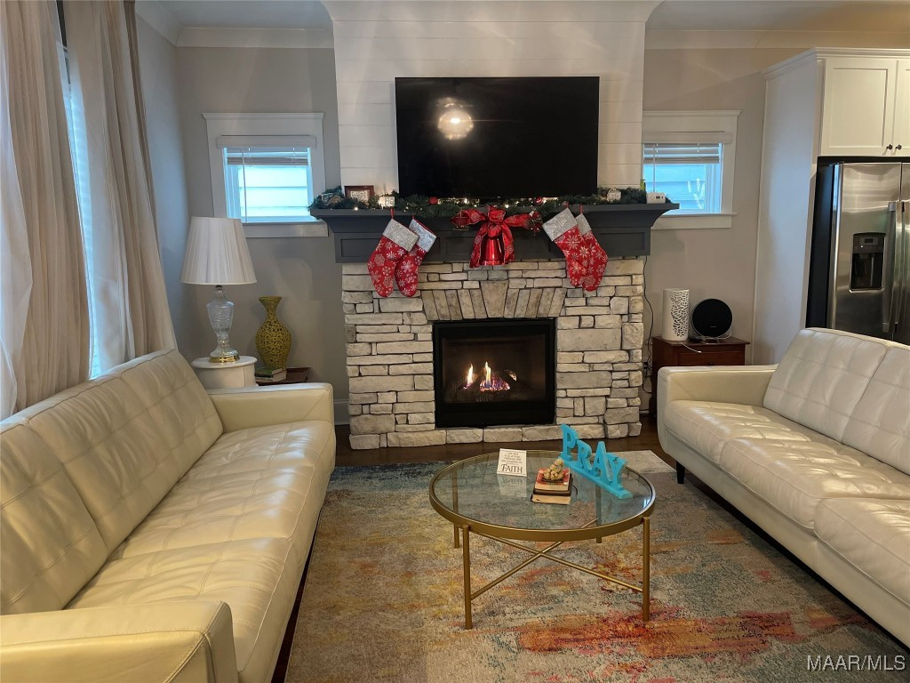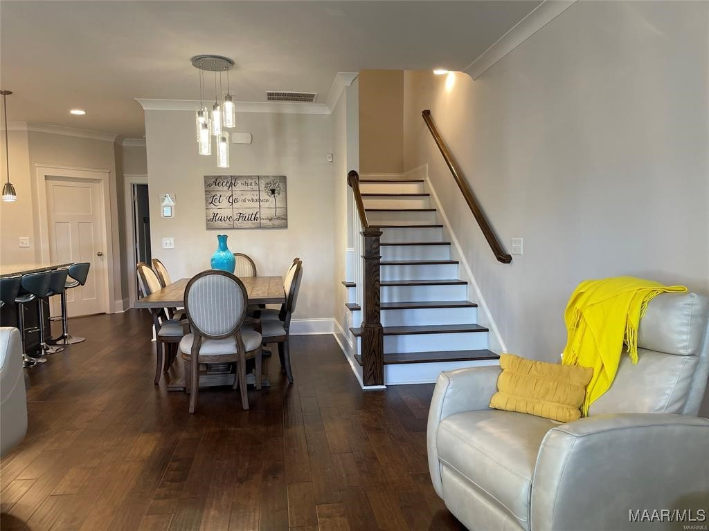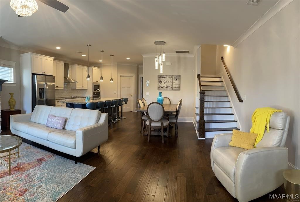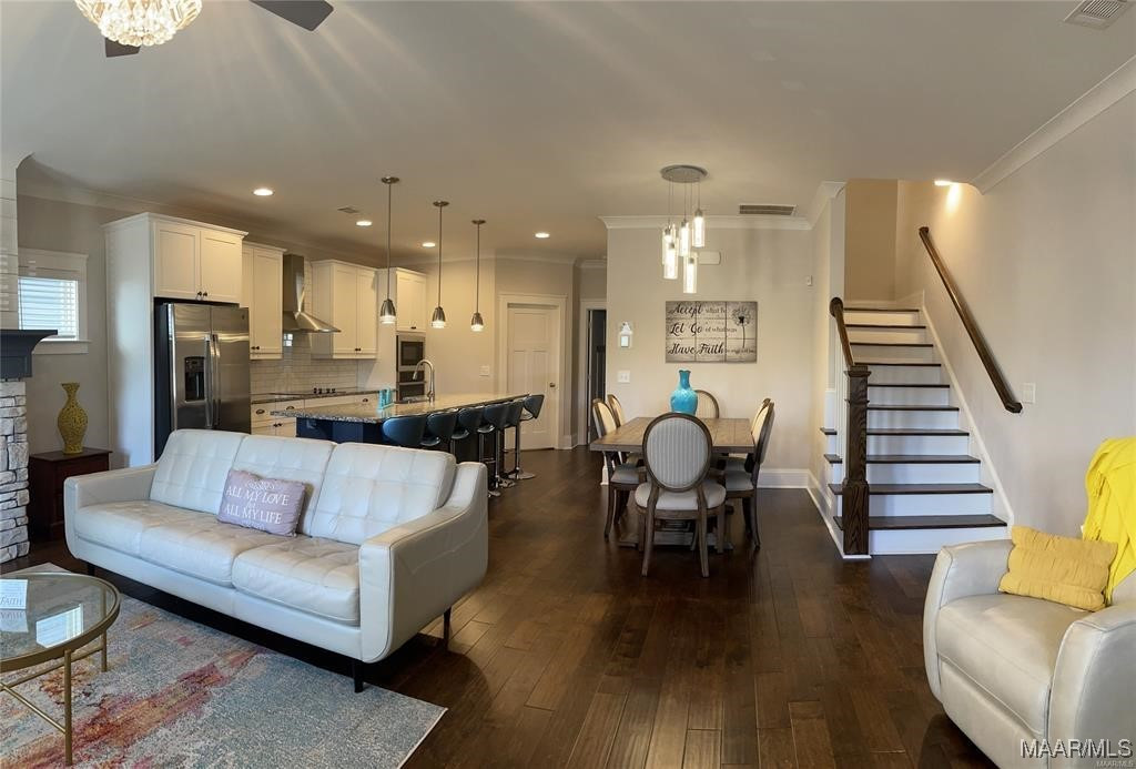 Welcome to The Orchards. This freshly painted, immaculate 4-bedroom, 3-bath home offers an open floor plan with many fantastic features. Downstairs, you are greeted with an open floor plan featuring a large family room, an updated kitchen with stainless steel appliances, and a guest bedroom on the first floor. There is a separate breakfast and a gas log fireplace with a beautiful mantle. The upstairs has three bedrooms and 2 baths. Enjoy your morning coffee on your private balcony overlooking the neighborhood from the master’s bedroom. with vaulted ceiling & modern ‘en suite’ bath w/ split vanities, garden tub & separate shower, + large walk-in closet. Also featured is a 2-car GARAGE with extra parking in the rear. The Orchards provide additional amenities, including a community pool, green space, playgrounds, and ponds. Pike Road Elementary School is also just a two-minute walk, and The Orchards Clubhouse has amenities such as a neighborhood pool, splash pad, park & playground & much more. NEW DISHWASHER, NEW MICROWAVE, AND NEW HOOD VENT – ALL IN 2024. The refrigerator does not stay.