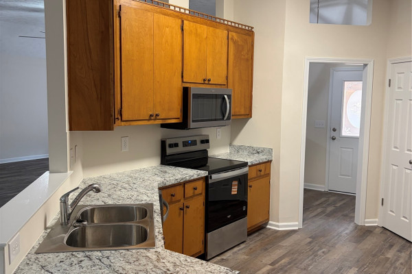 New light fixtures, New Vinyl Floors Throughout, New bath and Kitchen Countertops, 10 Foot Ceilings so makes it feel bigger, Master has 2 closet so plenty of room, New paint job, Nice size garage, All new Appliances Fridge Dishwasher Stove and Microwave