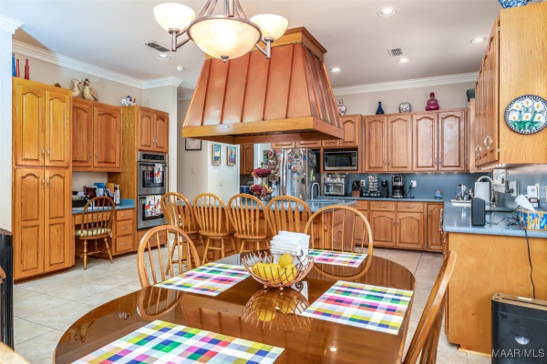 Elegant 4 Bedroom, 3 Full Bath, 1 Half Bath Home, this spacious and thoughtfully designed home offers over 5,600 square feet of living space, blending timeless details with modern conveniences. Inside, you’ll be welcomed by a grand foyer with marble floors & a beautiful staircase leading to the second level. The formal dining room features rich wood flooring, while the expansive kitchen is a chef’s dream—complete with a butler’s pantry, custom cabinetry, corian countertops, built-in desk area, & a large work island with overhead vent (plumbed for an additional sink). A breakfast room, double ovens, electric cooktop, wine closet, stainless appliances, & an oversized pantry with pull-out drawers provide both function & style. The family room is warm and inviting with wood floors, wood paneled walls, built-ins, a marble fireplace, & a wet bar with connections for a refrigerator. Additional main-level highlights include a mudroom entry from the side driveway with extra pantry storage, a laundry room with patio access, a two-car garage with shelving and storage room, and a half bath conveniently located off the foyer.