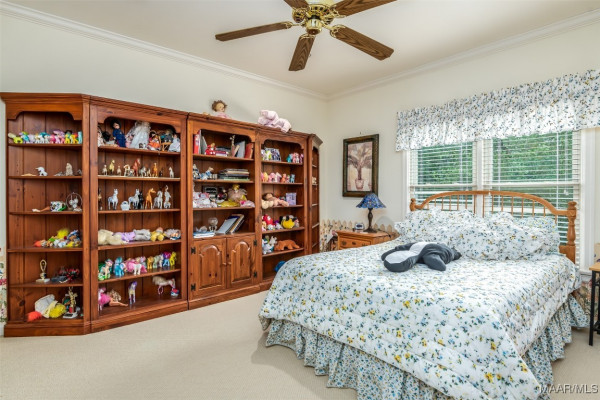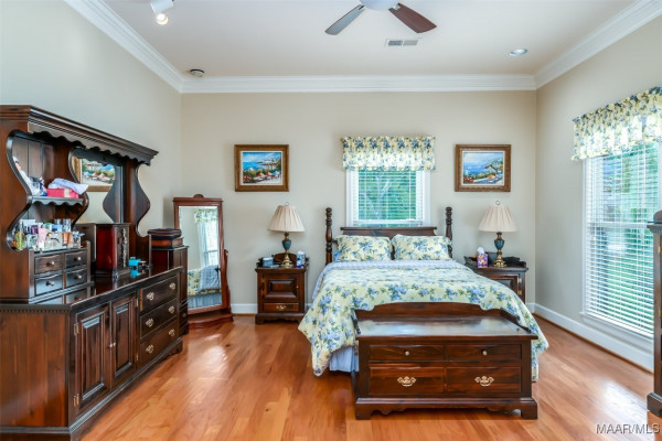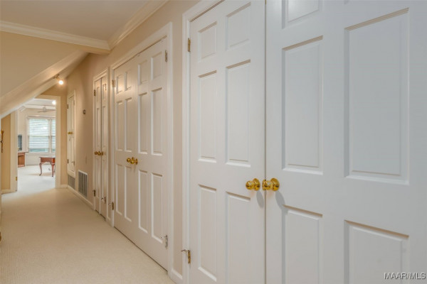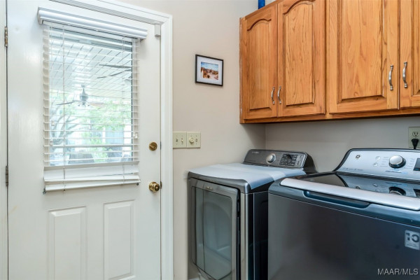 Upstairs, 4 spacious bedrooms, one with a full bath, and another full bath in the hall. The 4th bedroom has built-in cabinets and drawers that securely lock. There is abundant storage throughout the upstairs, a cedar closet and attic storage.