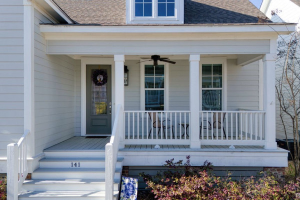 This well-maintained home offers a thoughtful layout with three bedrooms on the main level plus a garage, all just a short walk from the Blue Heron Pool Club. A welcoming front porch leads into the foyer, opening to a bright and spacious kitchen, living, and dining area featuring beautiful hardwood floors. The kitchen is designed for both everyday living and entertaining, with a large work island and bar seating, walk-in pantry, painted cabinetry, and stylish finishes. The dining area is highlighted by custom lighting, adding a warm and inviting touch. The living space offers plenty of room to gather, with easy access to the covered back porch, perfect for relaxing or enjoying time outdoors. The owner’s suite provides a private retreat with an ensuite bath featuring double vanities, a soaking tub, tiled shower, and two walk-in closets. On the opposite side of the home, you’ll find two guest bedrooms and a full bath, offering a functional and private layout. Upstairs, a versatile space with a full bath and closet can serve as a fourth bedroom, bonus room, or home office. Enjoy all that The Waters has to offer, with convenient access to community amenities and the lifestyle that makes this neighborhood so special.