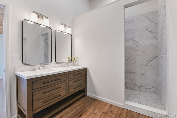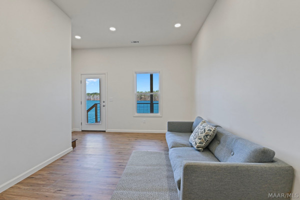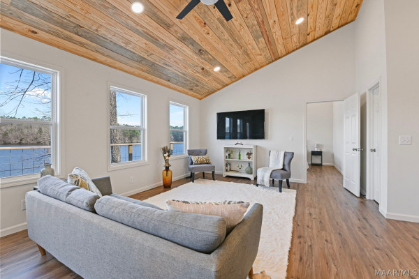 Brand new, custom-built Lake Jordan home featuring 3-bedrooms and 2.5 bathrooms. This home features open-concept kitchen and den with vaulted tongue-and-groove ceilings. The kitchen is equipped with custom-made countertops and stainless-steel appliances. The master suite, located off the kitchen, also boasts tongue-and-groove ceilings, along with a spacious bathroom and an oversized walk-in tiled shower. The downstairs area offers 9.5-foot ceilings and two additional bedrooms, perfect for children or guests. Outside, the choice of two decks, a large pier, and a built-in wet slip. Call now to schedule your private showing.
