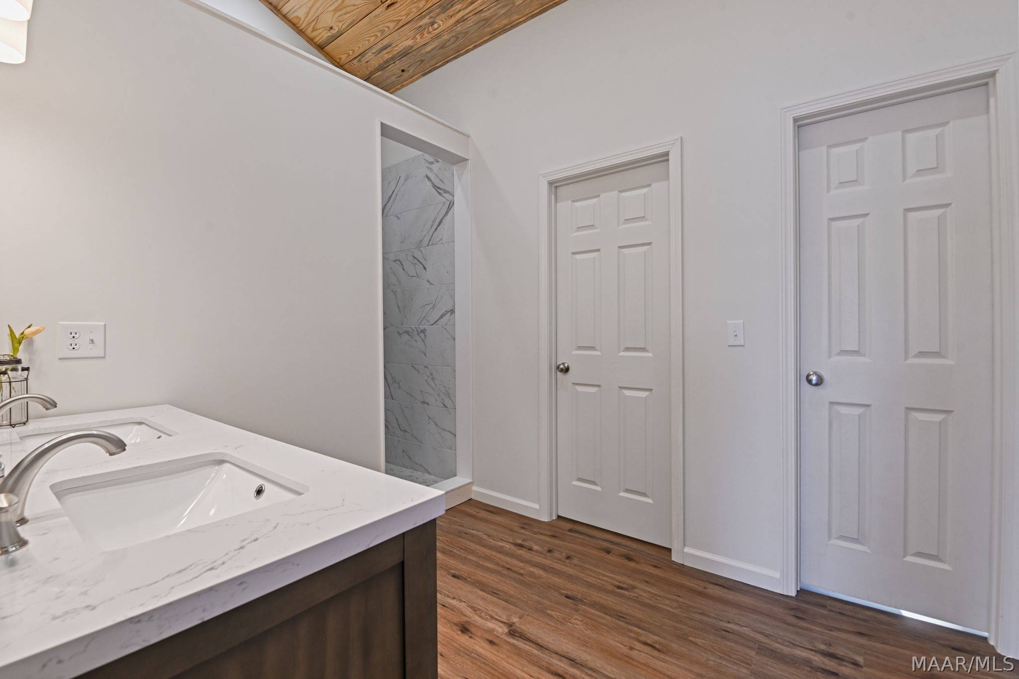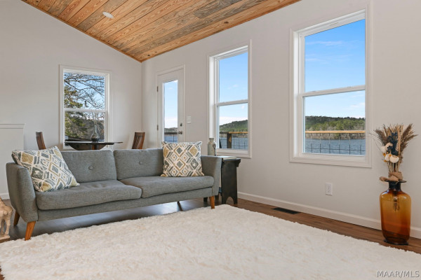 Brand new, custom-built Lake Jordan home featuring 3-bedrooms and 2.5 bathrooms. This home features open-concept kitchen and den with vaulted tongue-and-groove ceilings. The kitchen is equipped with custom-made countertops and stainless-steel appliances. The master suite, located off the kitchen, also boasts tongue-and-groove ceilings, along with a spacious bathroom and an oversized walk-in tiled shower. The downstairs area offers 9.5-foot ceilings and two additional bedrooms, perfect for children or guests. Outside, the choice of two decks, a large pier, and a built-in wet slip. Call now to schedule your private showing.