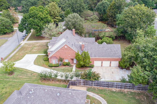 Discover timeless elegance in this custom built 4-bedroom, 4.5-bath home offering over 5,600 sq. ft. of living space. Originally a 1992 Parade Home, the residence showcases superior craftsmanship and updates that blend classic design with modern convenience. The home welcomes you with a grand foyer and flows into formal and casual living spaces, including a family room with fireplace, a formal dining room, and a sun-filled breakfast nook. The chef’s kitchen features custom cabinetry, granite countertops, double ovens, oversized pantry, and a wine nook—perfect for entertaining. Retreat to the spacious primary suite on the main level, complete with sitting area, dual closets, and a spa-inspired bath with jetted tub and oversized shower. Upstairs offers two additional bedrooms, one en suite, a versatile room with built-in storage, and a bonus room complete with a bar area. Enjoy year-round relaxation in the heated and cooled sunroom, opening to a covered patio overlooking the tree-shaded backyard with gazebo. Additional highlights include a three-car garage and three HVAC zones.The kitchen and baths have all been updated. New roof, paint and carpet in 2025. New water heater in 2024. This home offers privacy, convenience, and space to gather, entertain, or simply enjoy the quiet elegance of its design.