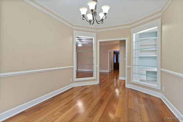 This inviting 3-bedroom, 2-bath garden home sits on a quiet cul-de-sac less than a mile from Montgomery Country Club, Huntingdon College, El Rey’s, and Martin’s Restaurant. Inside, you’ll find a generous foyer, great room, and dining room—each featuring beautiful wood floors. Elegant touches include a cove ceiling in the dining room, crown molding throughout, and tall windows that fill the home with natural light. Custom cabinetry, built-ins, and multiple closets offer excellent storage. Outside, the private courtyard and perfectly sized lawn provide just enough outdoor space without the upkeep of a large yard. Schedule your appointment today!