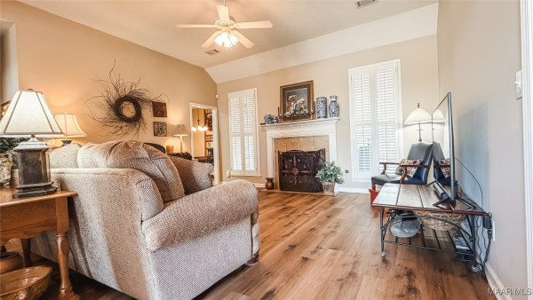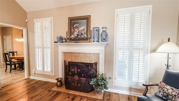 Discover this beautifully designed 4-bedroom, 2-bath home with a fantastic split floor plan and stunning architectural details throughout. Step inside to find 10 ft. ceilings in the formal dining room, foyer, and great room, creating an impressive sense of space. The great room features soaring ceilings, crown molding, gleaming wood floors, a stately mantel, and gas logs—a perfect gathering spot.