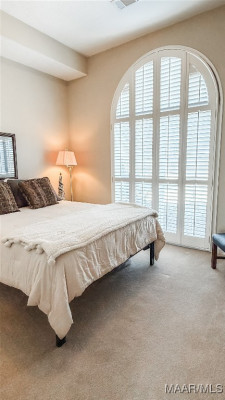 The galley kitchen is well-appointed with updated appliances, including a refrigerator (2019), dishwasher (2022), glass cooktop stove (2024), and built-in microwave. Beautiful wood floors and a striking arched window make the spacious main bedroom feel like a true retreat. The main bath offers a soaking tub, separate shower, double vanities, and a large walk-in closet.