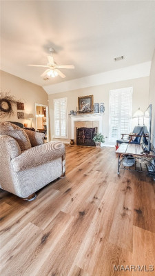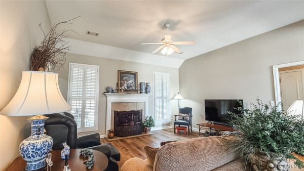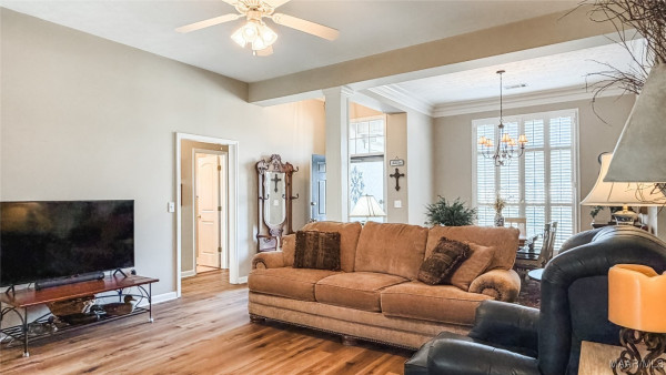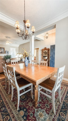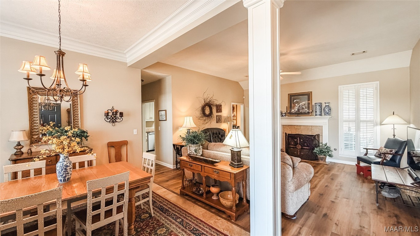 Discover this beautifully designed 4-bedroom, 2-bath home with a fantastic split floor plan and stunning architectural details throughout. Step inside to find 10 ft. ceilings in the formal dining room, foyer, and great room, creating an impressive sense of space. The great room features soaring ceilings, crown molding, gleaming wood floors, a stately mantel, and gas logs—a perfect gathering spot.