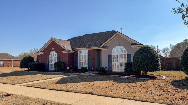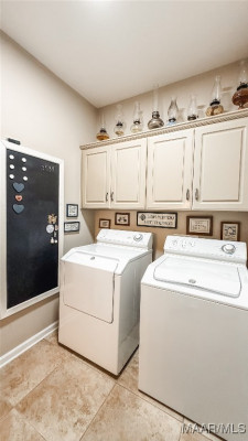 Plantation shutters add a touch of luxury throughout the home. Two generous bedrooms sit on one side of the home, with the main suite on the other, plus a versatile 4th bedroom or office just off the kitchen. The laundry room features matching painted cabinetry and includes the washer and dryer.
