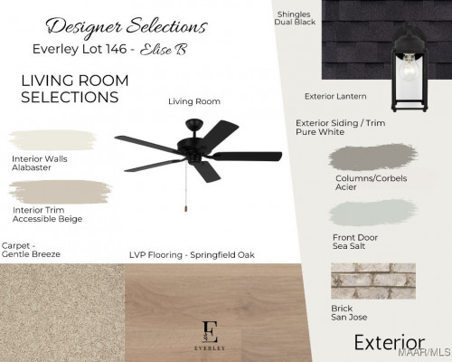 Welcome to The Elise B Floor Plan. This home is perfect for families seeking both functionality and style. On the main floor, the home features an open-concept great room, kitchen, and dining area, ideal for entertaining. The kitchen includes a spacious island and pantry, creating an efficient space for meal prep. A convenient laundry room and powder room are also located on the first floor, adding to the home’s practicality. The owner’s suite is located on the first floor, offering a private retreat with a large walk-in closet and a luxurious en-suite bathroom. Upstairs, you’ll find three additional bedrooms and a full bathroom, with the option of a two-sink setup for added convenience. A loft area provides extra space for relaxation or study. A covered front porch and a 2-car garage complete the floor plan, offering plenty of storage and curb appeal. With 4 bedrooms, 2.5 bathrooms, and a well-designed layout, the Elise B is an excellent choice for those seeking a home with both space and style. The community of Everley is nested into the growing city of Pike Road. With an easy commute to the cities of Montgomery and Auburn, this scenic community is surrounded by serenity and is a short distance from top-ranked Pike Road Elementary School. Current amenities include pickle ball courts, disc golf bins in community green space, and sidewalks connecting to the Pike Road Road Nature Trail.