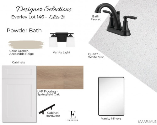 Welcome to The Elise B Floor Plan. This home is perfect for families seeking both functionality and style. On the main floor, the home features an open-concept great room, kitchen, and dining area, ideal for entertaining. The kitchen includes a spacious island and pantry, creating an efficient space for meal prep. A convenient laundry room and powder room are also located on the first floor, adding to the home’s practicality. The owner’s suite is located on the first floor, offering a private retreat with a large walk-in closet and a luxurious en-suite bathroom. Upstairs, you’ll find three additional bedrooms and a full bathroom, with the option of a two-sink setup for added convenience. A loft area provides extra space for relaxation or study. A covered front porch and a 2-car garage complete the floor plan, offering plenty of storage and curb appeal. With 4 bedrooms, 2.5 bathrooms, and a well-designed layout, the Elise B is an excellent choice for those seeking a home with both space and style. The community of Everley is nested into the growing city of Pike Road. With an easy commute to the cities of Montgomery and Auburn, this scenic community is surrounded by serenity and is a short distance from top-ranked Pike Road Elementary School. Current amenities include pickle ball courts, disc golf bins in community green space, and sidewalks connecting to the Pike Road Road Nature Trail.