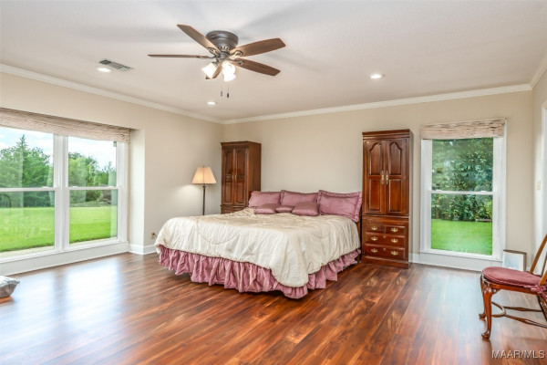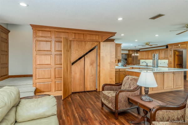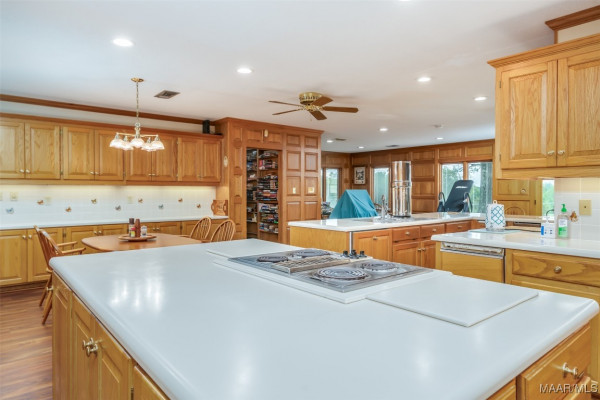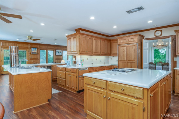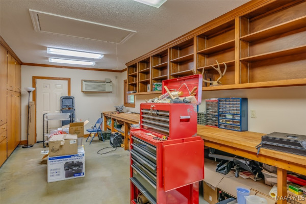 A TRUE COUNTRY ESTATE BUILT TO LAST WITH ROOM TO ROAM AND SPACE TO GATHER! If the Pioneer Woman and her family were moving to Alabama, this is where they would hang their hats. Down a picturesque winding, tree-lined driveway just 25 minutes from Baptist East Hospital, no expense was spared when this 5300+/- square-foot home was built (and later improved and expanded). Step inside to discover expansive living spaces filled with natural light and thoughtful updates including extensive custom-built-ins, fresh paint, new carpet and flooring, and a brand-new roof installed in 2024. The heart of the home is the unbelievable chef’s kitchen, outfitted with high-end appliances and ample custom food prep and storage options. It opens up to a gathering room and office area (with a hidden safe/storage room) boasting a wall of windows overlooking the peaceful views. Enjoy cozy evenings in the spacious den anchored by a wood-burning fireplace and two walls of custom-built-ins. Formal entertaining is a breeze in the gracious dining room and separate living/music room. Private spaces include three generously sized bedrooms and 3 full bathrooms downstairs. The upstairs hosts a huge fourth bedroom or bonus room that includes a built-in daybed and a unique train/lego table, on a pulley, ready to delight little engineers. Need more space for projects, storage, and/or animals? This 12+/- acre estate also features a heated and cooled workshop off the 3-car garage, a separate workshop/barn with four stalls, a fenced horse pasture, a garden area, a greenhouse, and even an outdoor shower for rinsing off after a day in the garden or barn. Additional acreage available for purchase (up to 59 acres total)
