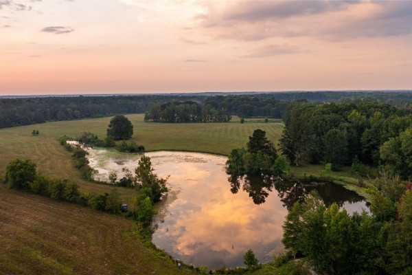 Wildlife thrives on the property. With big woods and open fields, it offers excellent hunting for trophy bucks, turkeys, ducks, and quail. The natural landscape and abundant game make it a sportsman’s paradise.