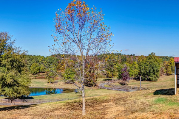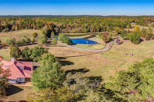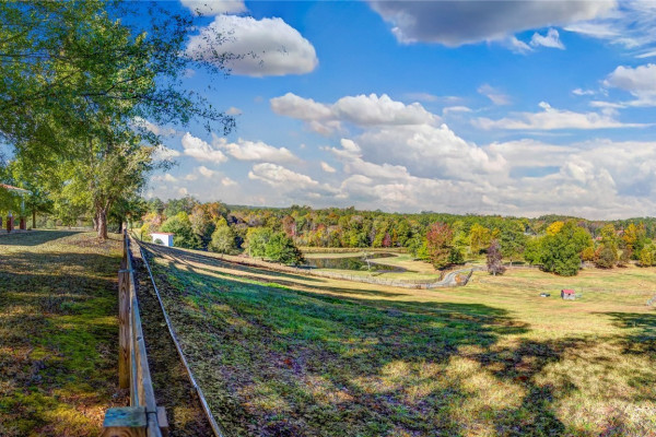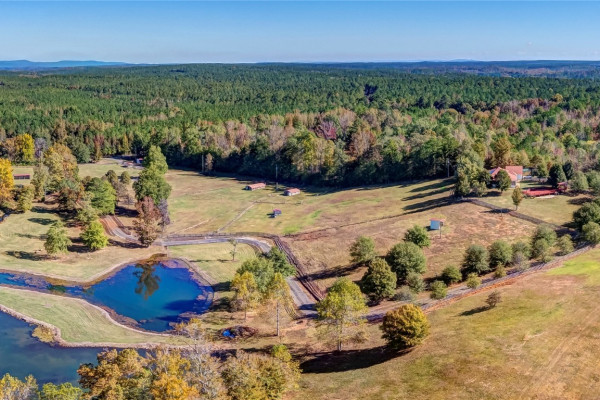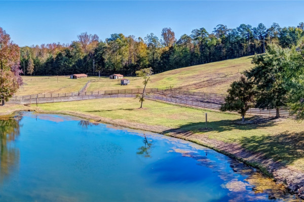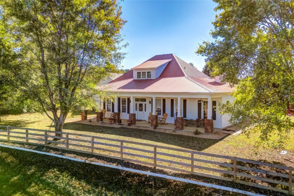 Perched atop a hill, the 2,331 sq ft home overlooks the ranch and two scenic ponds with sweeping countryside views. Built in 2006, the home blends Southern charm with modern comfort—tall ceilings, wide windows, and a warm, open layout. It offers 2 spacious bedrooms, 2.5 baths, and an additional room that can serve as a third bedroom or office. A covered front porch and private back patio provide the perfect spots to relax and enjoy the serene setting. The home sits on a poured slab with an attached two-car garage, and it’s connected to county water and fiber optics for modern convenience.