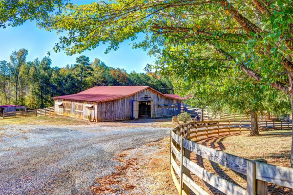 Welcome to Double D Ranch, a stunning 38.6± acre equestrian retreat in Coosa County, just minutes from Sylacauga and about an hour from Birmingham. The oak-lined entrance and classic ranch fencing set the tone for this lovingly maintained property, where the owner’s pride shows in every detail.