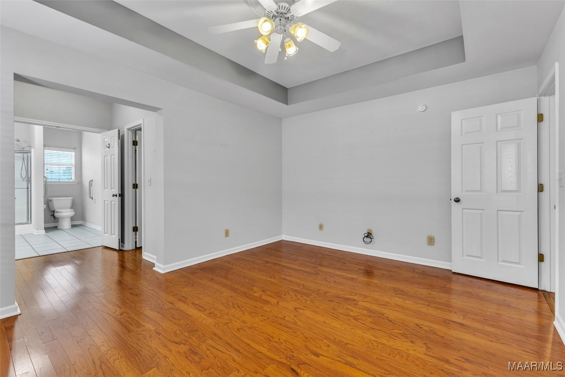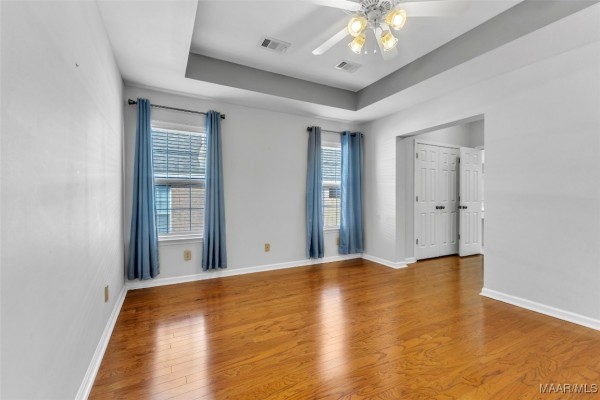 The primary suite is tucked away for privacy and features a tray ceiling, a large walk-in closet plus a second closet, and a spacious bath with a separate shower and linen closet. On the other side of the home, you’ll find two additional bedrooms and a full bath, ideal for kids, guests, or even a home office.