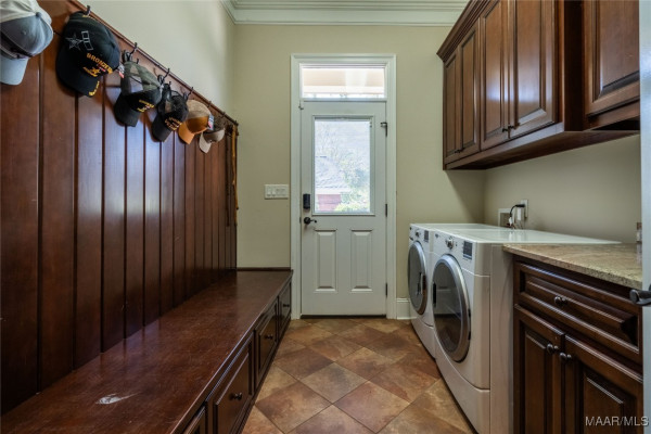The kitchen is a chef’s dream! Featuring a large island with a built-in sink and all granite countertops, this space includes high-end Electrolux stainless steel appliances, such as a side-by-side refrigerator with a bottom pull-out drawer, double ovens, a 5-burner gas cooktop, and a Kenmore Elite dishwasher and microwave. For added convenience, the sink is equipped with an instant hot water dispenser.