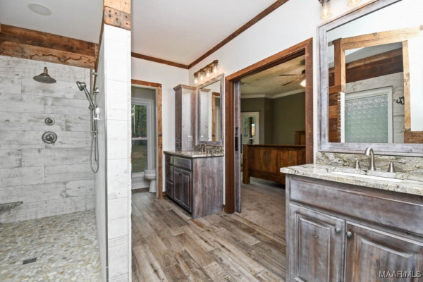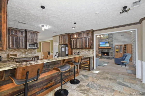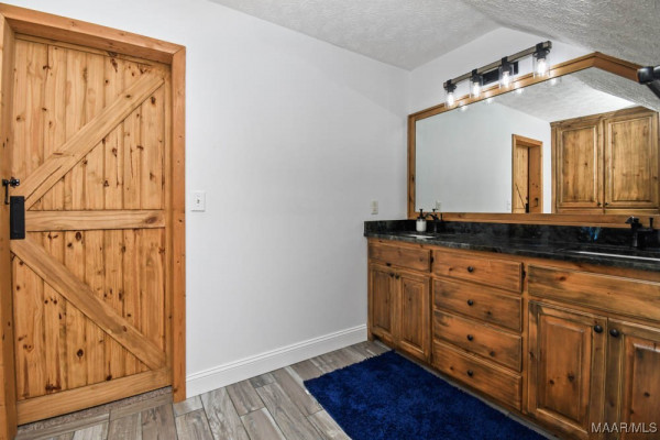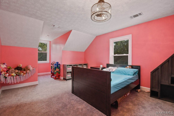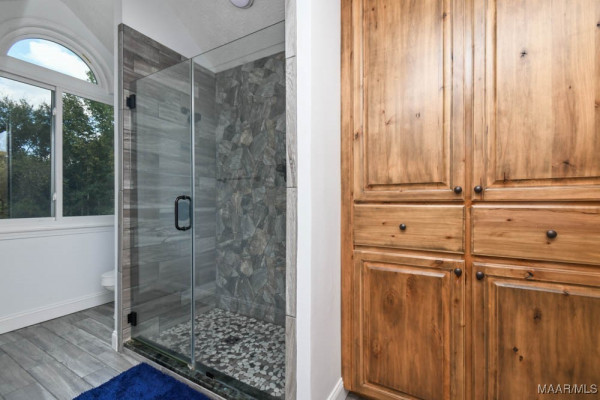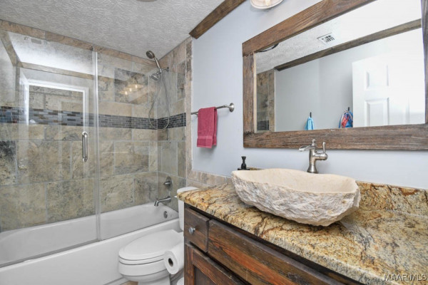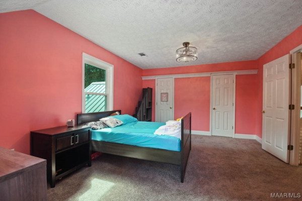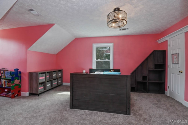 Step inside to a soaring vaulted ceiling and balcony overlooking the spacious great room. The kitchen is a chef’s dream with custom cabinets and granite countertops. The master suite features a barn-style door leading to a spa-like bath with a tile shower equipped with three shower heads, split vanities, a walk-in closet, and a linen closet. Upstairs, two large bedrooms share a beautifully updated full bath. A separate staircase leads to the bonus room over the carport area.