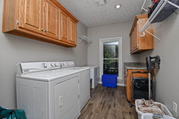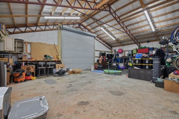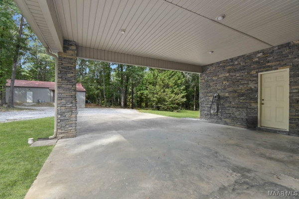 From the carport you can enter a storage room with cabinets, a utility sink, and endless potential as a dog-washing station, she-shed, or hobby room.The property is complete with two detached buildings: