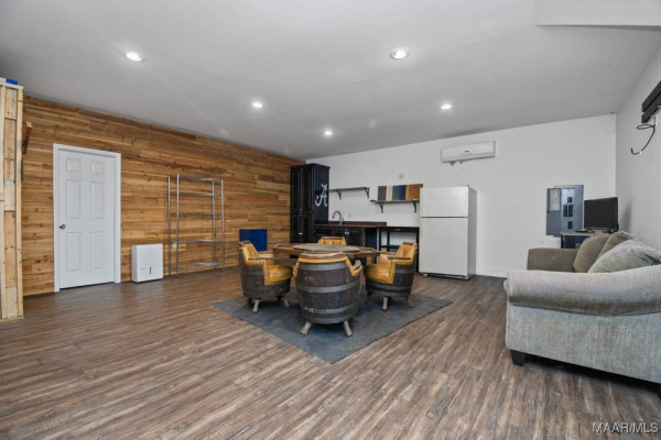 A 1,487 sq. ft. structure that includes 860 sq. ft. of finished living space with an open kitchen/living area, bedroom, full bath, and its own heating and cooling unit—plus 972 sq. ft. of garage space.