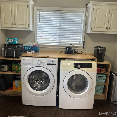 The kitchen is equipped with granite countertops and offers ample workspace for cooking and entertaining. A separate laundry room adds to the home’s functional layout.