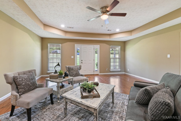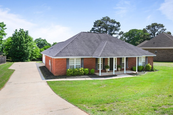 On a half acre of land you will find this wonderful home with updated lighting, updated outlets, fresh paint, and the HVAC is newer as well…there are spacious bedrooms, a large family room, hardwood flooring along with freshly installed carpet in the bedrooms, a covered front porch as well as a covered rear patio and on your way in and out of the subdivision you have a view of horses, we know they love apples and watermelon if you want to bring them a treat…Maxwell Air Force base is about a 20 minute or so drive!!
