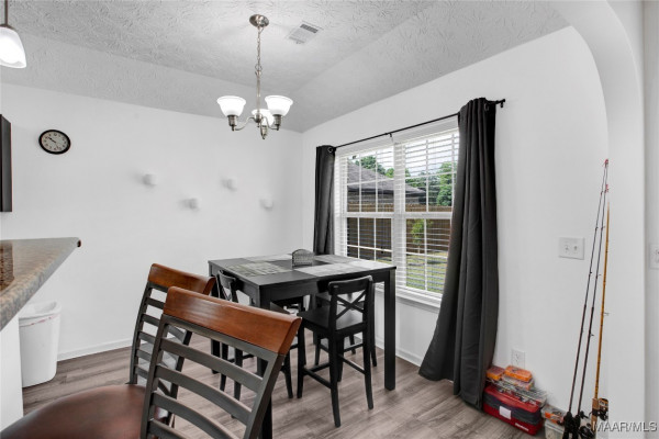 The kitchen boasts stainless steel appliances, a breakfast bar, and a pantry. Luxury Vinyl Plank flooring extends through the dining room, kitchen, and breakfast area, while both bathrooms are finished with durable hard tile.