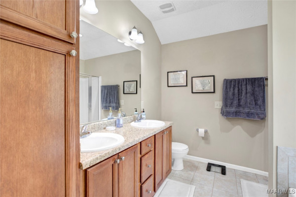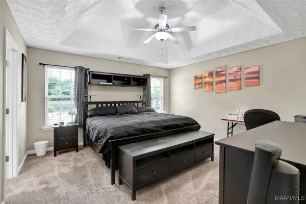 The GENEROUSLY sized main bedroom includes a walk-in closet and an en-suite bath featuring double sinks, a garden tub, and a SEPARATE SHOWER. Three additional bedrooms share a full hall bath, offering plenty of space for family or guests.