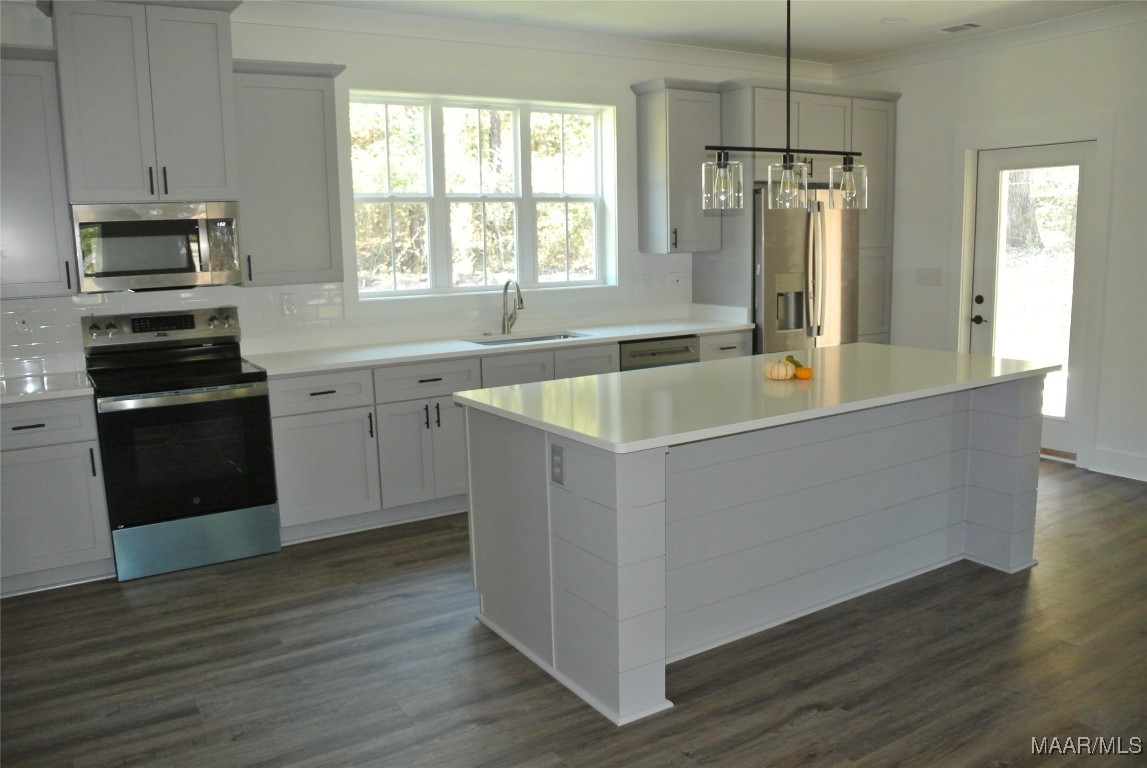 Celebrate Christmas in your new construction farmhouse style, open floor plan home. This 3 bedroom , 2 bath beauty has a spacious 1788 square feet of living area. The great room, dining area and kitchen create one large space to enjoy large gatherings such as Thanksgiving or Christmas. The great room part features a vaulted wood ceiling, a fireplace with gas logs and cabinets on both sides. The kitchen features a large island with breakfast bar and all new appliances to include an electric range, microwave, dishwasher, disposal and a double sided refrigerator/freezer. There is a large laundry room and a bonus utility room. The master bedroom and bath are on one side of the home and two bedrooms and a bath are on the other side for maximum privacy. The master bath has a double vanity, free standing bathtub, separate shower, a water closet, a large walk-in closet and a linen closet. The outside features a large covered porch and a covered rear patio.