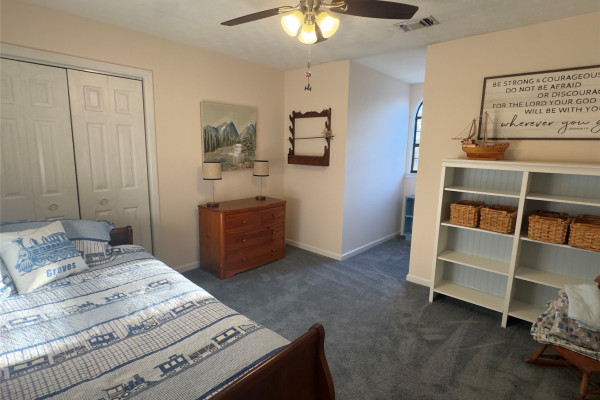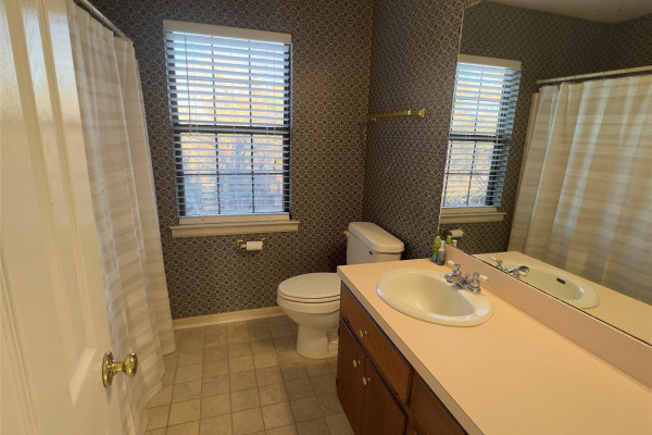 Downstairs, you’ll find two living areas—one just off the kitchen and another with its own exterior access. The second living area is especially large, making it perfect for family gatherings or spreading out in comfort. The kitchen features beautiful new countertops, stainless-steel appliances, and a picturesque view of the private backyard through the sink window and double doors.