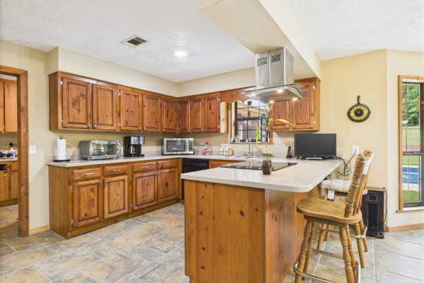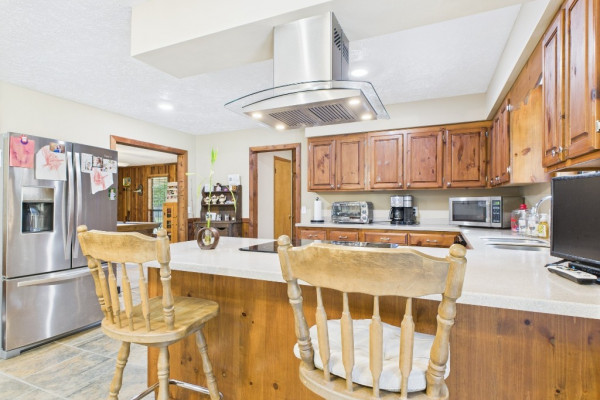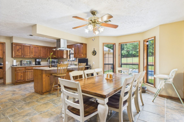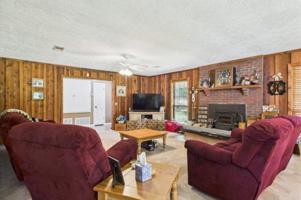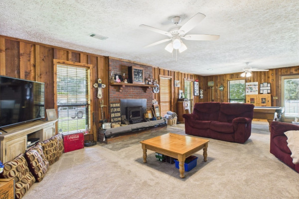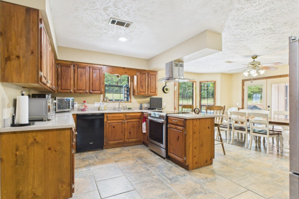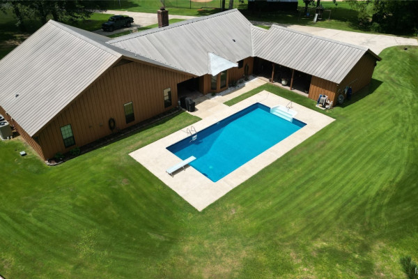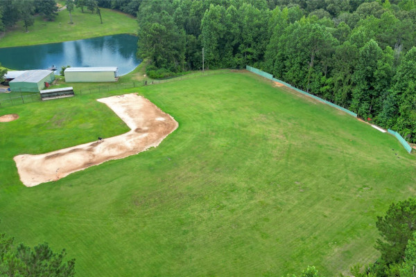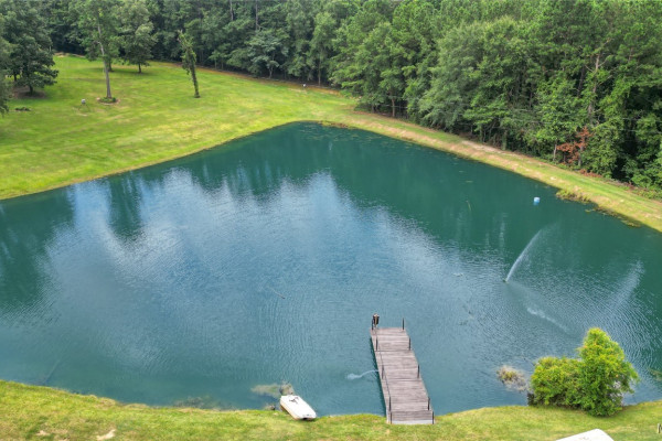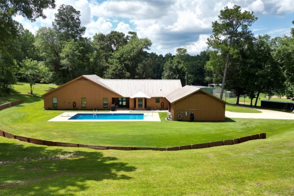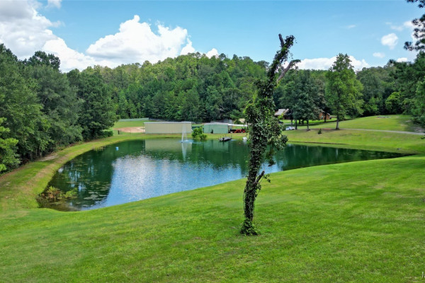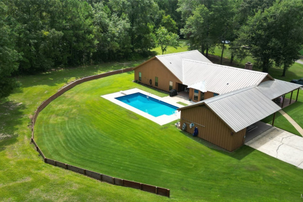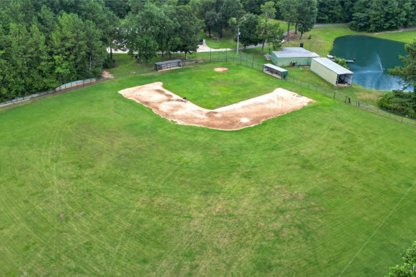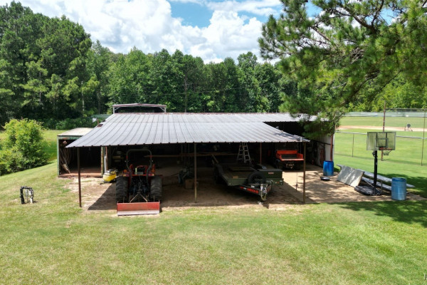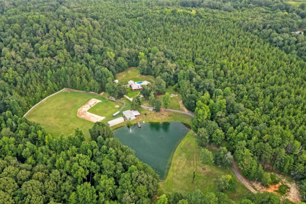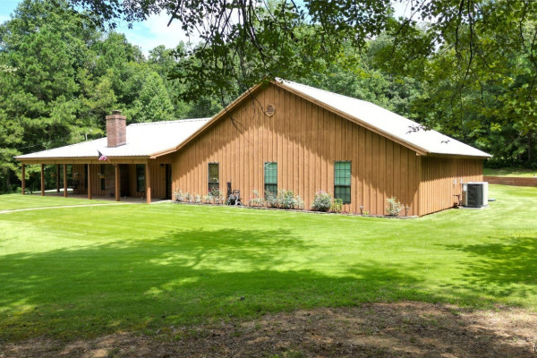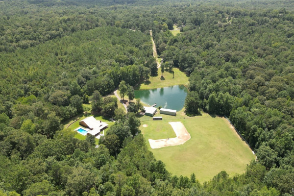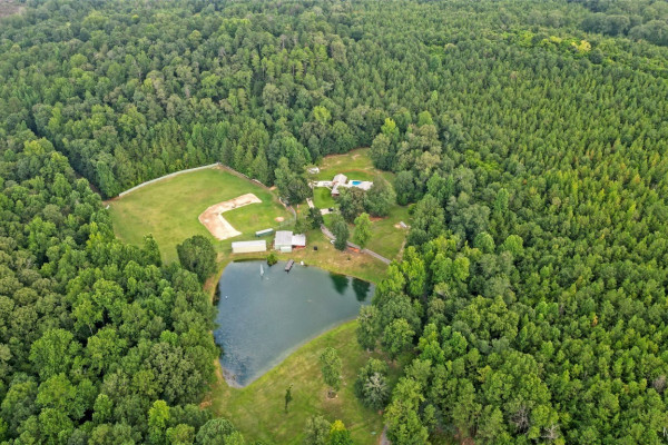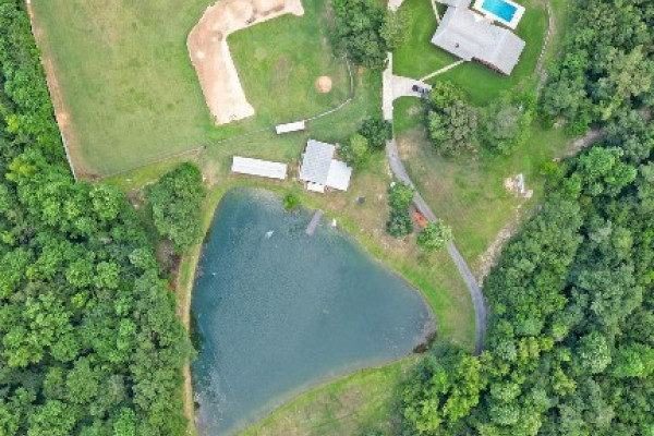 THIS IS A FIELD OF DREAMS, COUNTRY LIVING AND ALL THE PLEASURE TO BE HAD. You do not have leave your HOME. Watch the deer while having your morning coffee, take a dip in the pool, then go wet your hook in the pond. Later in the day play baseball then relax. Five bedrooms, 3 and half baths. Country Kitchen, large laundry room with lots of storage. Oversized Den with wood burning fireplace and insert. Main bathroom has jetted tub and separate shower and double vanity. Main bedroom has walk in closet and wood floors. Four more bedrooms (One bedroom is not in pictures because it is a storage room in the moving process.) 2 more full baths and half bath. Deep well that waters pond and baseball field. Sprinkler system, front porch wraps halfway around house. Has workshop with power. House has metal roof and 2 covered patios. House has two water heaters and two A/C and heating units.