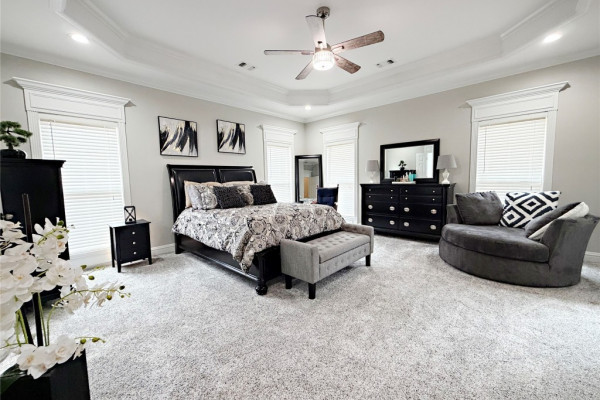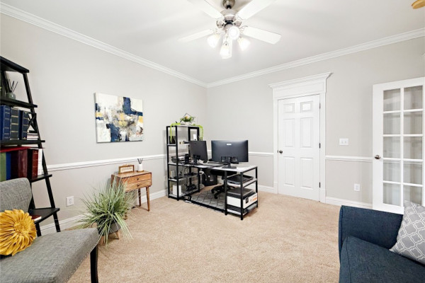 Custom built home located in the desirable Emerald Mountain. Located on large spacious private lot that backs up to a creek. Exterior features beautiful landscaping, front porch, circular driveway, extra parking, gutters, covered back porch with swing, extra patio, grill area, fence enclosure, exterior workshop with garage door and power. Coming in off the entry foyer is a separate office or 4th bedroom. Separate dining room. 12′ ceilings in main areas of home and heavy trim package throughout. Large great room with gas log fireplace and built in cabinet. Updated kitchen includes breakfast room with bay window, breakfast bar, work island, custom cabinets, granite countertops, pantry and stainless steel appliances. Massive master suite has sitting area and trey ceilings. Master bath has been recently remodeled with double vanities tile shower, free standing tub, custom walk in closet, water closet and linen. On the opposite end of the home are two bedrooms with a Jack & Jill bathroom that has double vanities, linen, steel tub with tile surround. Large laundry room with sink. Other extras include 1/2 bath for guests, plantation shutters and termite bond. Recent updates include new HVAC (2024), water heater (2024), remodeled master bathroom, new landscaping, custom master closet, and new LVP flooring in all main areas to include office/4th bedroom and carpet in master. This home is zoned for Redland Elementary and the newer Redland Middle School.