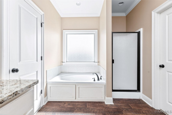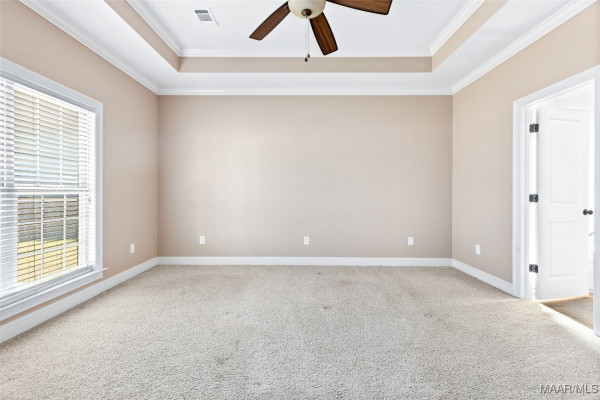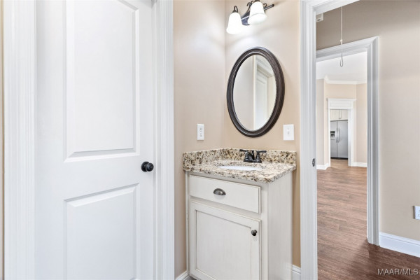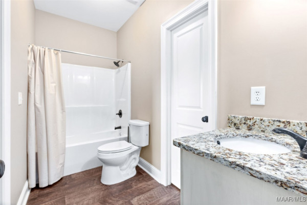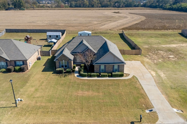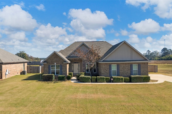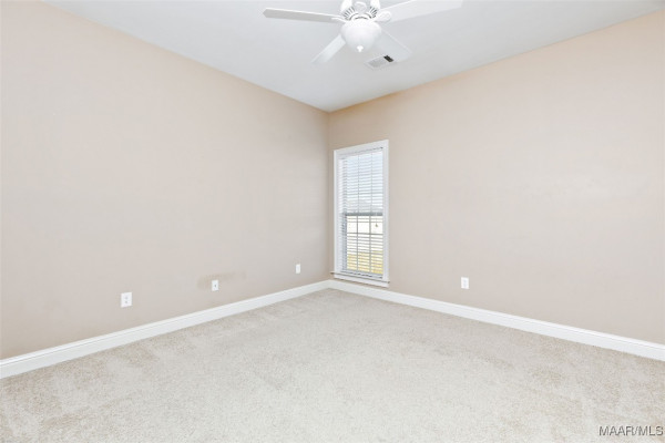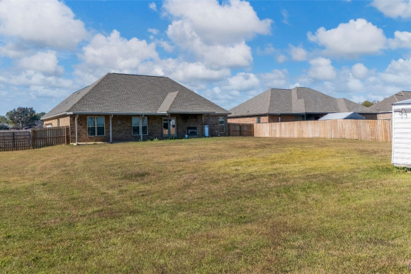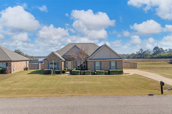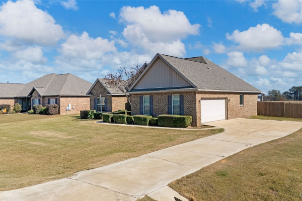 This split-floor plan places the primary suite on one side of the home for added privacy. The primary bedroom is spacious and inviting, with an attached bath featuring a garden tub, a large vanity, and a separate shower. On the opposite side, you’ll find two generously sized guest bedrooms connected by a Jack-and-Jill bathroom with granite countertops and a tub/shower combo.
