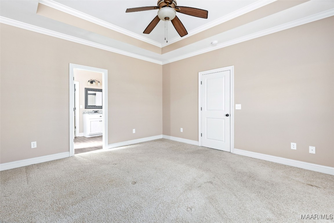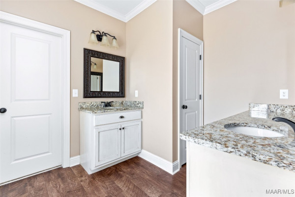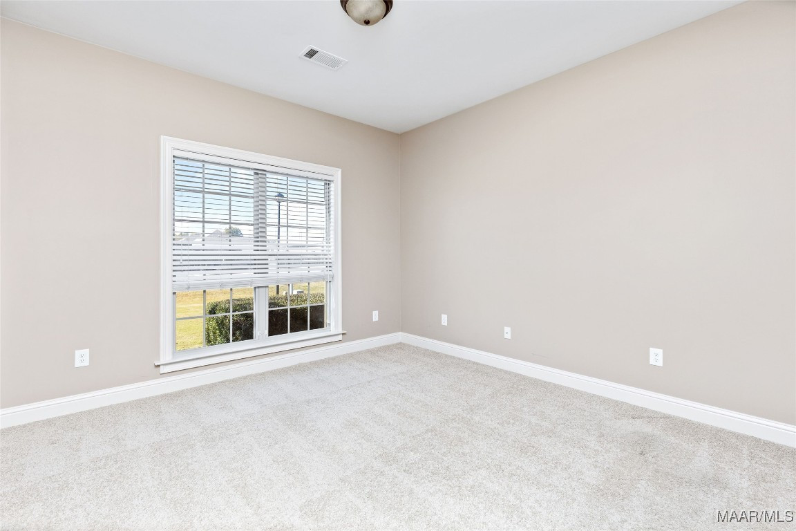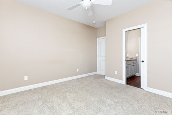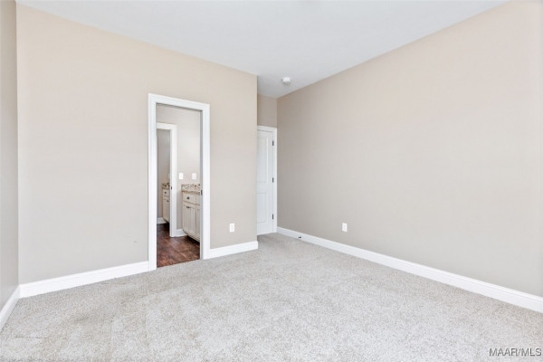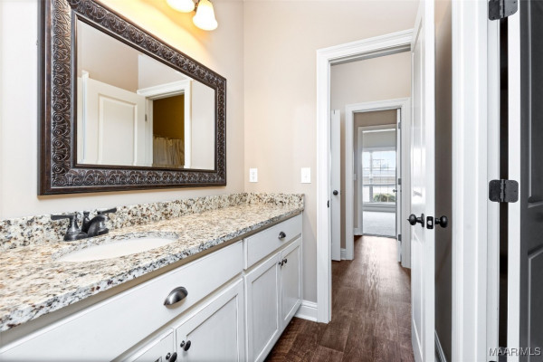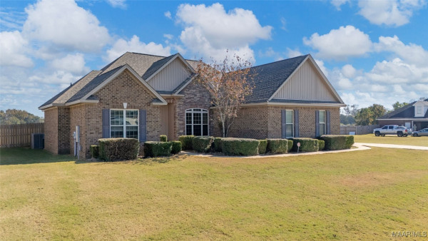 This split-floor plan places the primary suite on one side of the home for added privacy. The primary bedroom is spacious and inviting, with an attached bath featuring a garden tub, a large vanity, and a separate shower. On the opposite side, you’ll find two generously sized guest bedrooms connected by a Jack-and-Jill bathroom with granite countertops and a tub/shower combo.