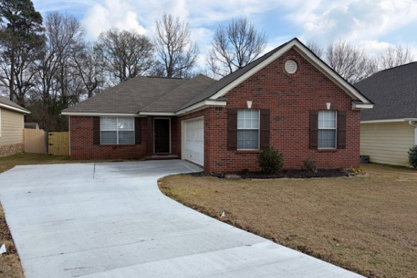 Welcome to 1684 Hawthorne Lane, located in the desirable Brookstone neighborhood of Prattville! This charming 3-bedroom, 2-bath home features a spacious open floor plan designed for comfortable modern living. The inviting living area offers a cozy corner fireplace (decorative only), perfect for creating a warm atmosphere. The kitchen boasts a breakfast bar, ample cabinetry, and opens seamlessly to the living and dining areas—ideal for everyday living and entertaining. All bedrooms feature oversized closets, while the primary suite includes a private bath with double sinks, a soaking tub, and a separate shower for a relaxing retreat. Enjoy outdoor living in the large, fully fenced backyard with a covered patio, perfect for morning coffee or weekend gatherings. Brookstone is a sidewalk-lined community with a neighborhood park and playground, conveniently located near shopping, dining, and schools.