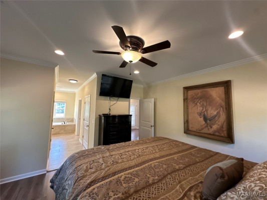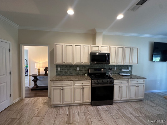 The thoughtfully designed split floor plan provides privacy and comfort, highlighted by a sumptuous primary suite with a spa-style bath, separate shower, and expansive closet space. A chef’s kitchen boasts soft-close custom cabinetry, striking granite countertops, and designer fixtures, seamlessly blending style and function.