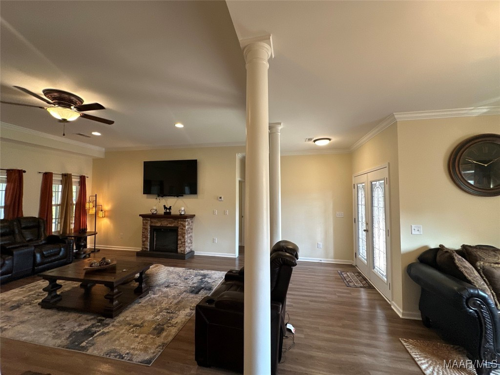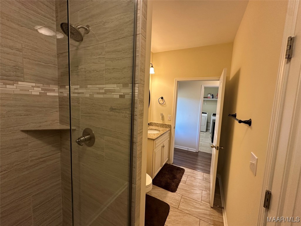 The thoughtfully designed split floor plan provides privacy and comfort, highlighted by a sumptuous primary suite with a spa-style bath, separate shower, and expansive closet space. A chef’s kitchen boasts soft-close custom cabinetry, striking granite countertops, and designer fixtures, seamlessly blending style and function.