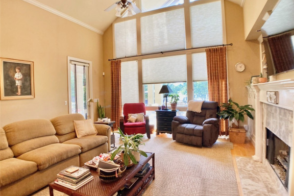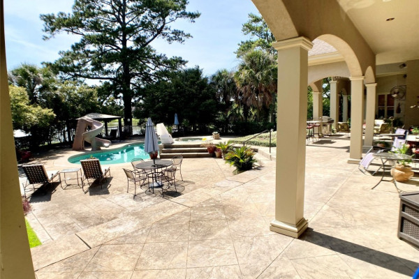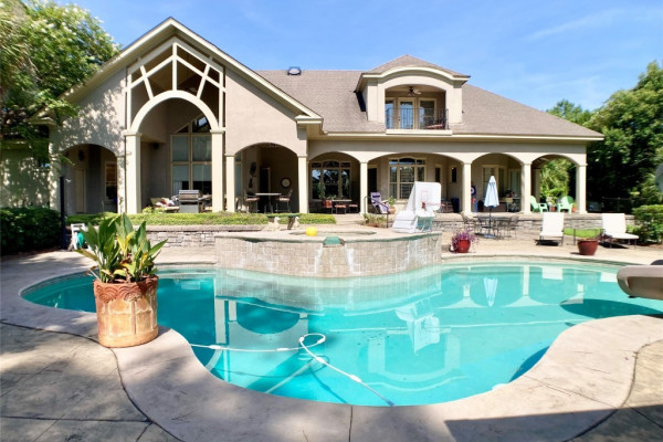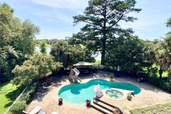 Come find the most private outdoor space, located right in the middle of Montgomery. House has a private gate from Bell Road that is shared with only one other home. The property is almost two acres with pond, pool, fenced yard, 4 car garage and all designed to make your everyday life feel like you are on a permanent vacation. Palm trees, lush grass, mature trees and load of flowers and greenery will calmly welcome you home everyday. The main house has a separated Master suite that has access to covered terrace and pool area, a huge walk-through closet with loads of shelving, hanging, shoe storage, cabinets, counters and laundry. Master bath has dual vanities, separate tub, water closets and lots of natural light. The major living spaces include study/living room with built-in bookcases and two story ceiling, Formal dining room, great room with fireplace, vaulted ceiling, and kitchen with large granite island, pantry, and lots of cabinet space. Two additional downstairs bedrooms are on opposite side of house from Master and have shared bathroom but each room has its own sink, dressing area and walk-in closet. Upstairs is another bedroom with its own bathroom, double closets, private A/C and a wonderful balcony with views of the park like backyard and pool. The main house has a one car garage with walk up stairs to floored attic space. Connected to the main house by a covered breezeway is a 3 car garage with a wonderful Studio Apartment / Bonus room above. The apartment has a downstairs foyer, and upstairs has a lot of room with full bath, walk-in closet, kitchenette, and private deck with views of the neighbors pet deer. Other notable features include the wonderful pool with waterfall feature, 1/2 bath off covered terrace, access to neighborhood pond, great parking, sink and cabinets in garage, and storage galore.