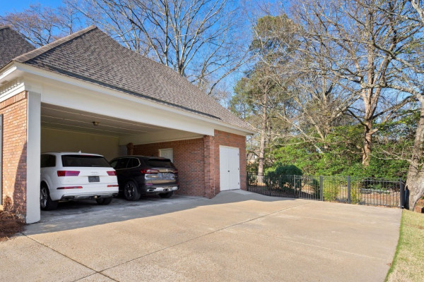 Enjoy year-round comfort with a brand-new downstairs HVAC system in this stunning 4-bedroom, 3.5-bath home nestled in the established Hillwood neighborhood. Inside, you’ll find spacious living areas and elegant design touches throughout. A formal living room or study/office provides the perfect space for quiet work or relaxation, while the formal dining room sets the stage for memorable gatherings. The large living room features a cozy gas fireplace and custom built-ins, creating a warm and inviting atmosphere. The beautifully renovated kitchen is a chef’s dream, complete with top-of-the-line KitchenAid appliances, abundant cabinetry, and a sunny breakfast nook. Additional built-ins offer extra storage and functionality. The main-level primary suite is a true retreat, boasting dual vanities, a soaking tub, a center island, and dual closets. Upstairs, three generously sized bedrooms and two bathrooms provide ample space for family or guests. A bonus room with custom built-ins offers added flexibility to fit your needs. Practicality meets convenience in the large laundry room, equipped with multiple closets, a folding station, a built-in ironing board, and space for an extra refrigerator or freezer. For hobbyists or those needing additional storage, a spacious workshop off the attached carport offers the ideal solution. Step outside to the covered back porch with a built-in grill, perfect for outdoor dining and entertaining. The serene backyard, surrounded by mature trees and professional landscaping, offers peace and privacy, with a sprinkler system for easy maintenance. Beautifully maintained and move-in ready, this home is a true gem! Don’t miss the chance to make it yours!