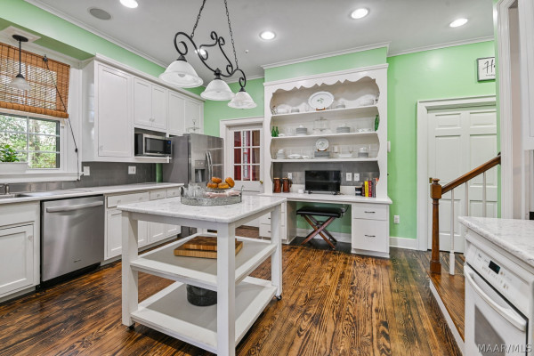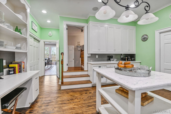 In the Garden District you will find this beautiful home with extras galore…. There is even a workshop over the 2 space garage! The hardwood floors flow throughout the down stairs and lots of love and care has been put into to this home. There are 4 bedrooms and an office with a fireplace and almost every room holds its own full bath, The gathering room is off the kitchen and holds lots of windows to let in the sunshine and also has access to the large family room…more details coming soon!