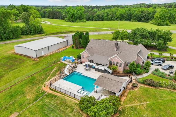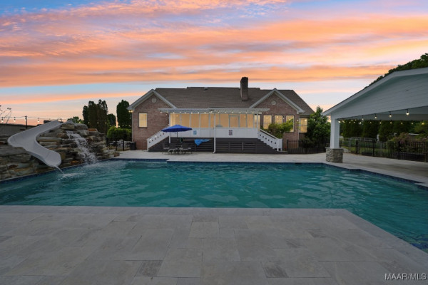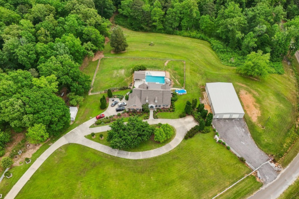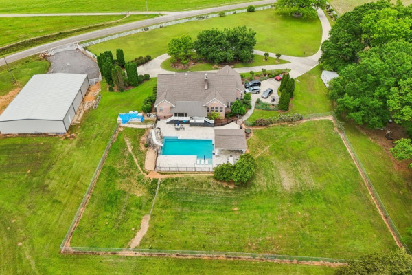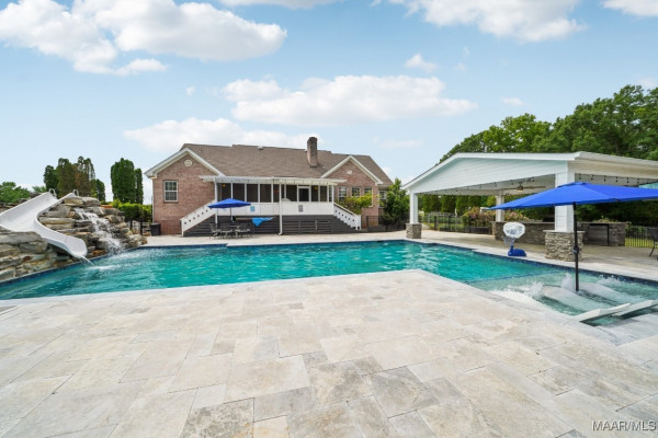 EVERY DAY FEELS LIKE VACATION! Welcome to your dream country retreat in Clanton, AL, offering the perfect blend of comfort, privacy & Southern charm. UNIQUE FEATURES INCLUDE: Private Gate, 8+ ACRE property, SECRET ROOM;) 4000 SQ FT. SHOP, CUSTOM OUTDOOR OASIS added ’21, features an oversized screened porch, cabana w/outdoor kitchen w/grill & refrigerator, gunite saltwater pool w/tanning ledge, slide, fountain & custom lighting. Main lvl living offers formal LR & dining, 2-car garage w/great storage; laundry & 1/2BA, oversized kitchen w/updated appliances & casual dining; spacious primary suite w/ updated bathroom & walkin closet; 2 more BRs & full BA on main. Upstairs feat. full BA & 4th BR, media room, flex space & a hidden safe room. PLUS on the property is 4000 sq. ft. SHOP plumbed for full BA & septic. Ample land for gardening, recreation, or future family expansion, this property is a rare find! NEW ROOF 2021. Just 5 minutes from I-65!
