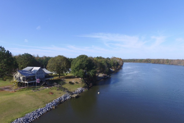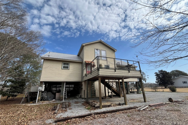 Welcome to your dream getaway! This beautiful riverfront home in Minter, Alabama boasts 3 spacious bedrooms and 2 full bathrooms, thoughtfully laid out in an open floor plan with vaulted ceilings that create a sense of space and light. Constructed with durable Hardie board siding, the house is elevated one story up, offering picturesque views and peace of mind. STARLINK internet system remains with the house. There is a room downstairs that is perfect for storage or a workshop; or whatever you need!
