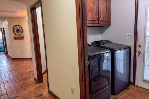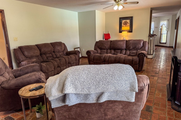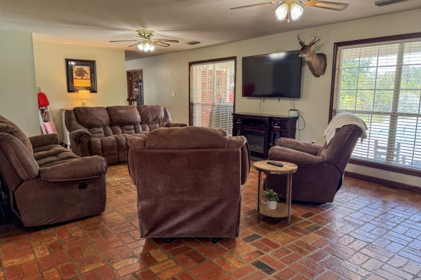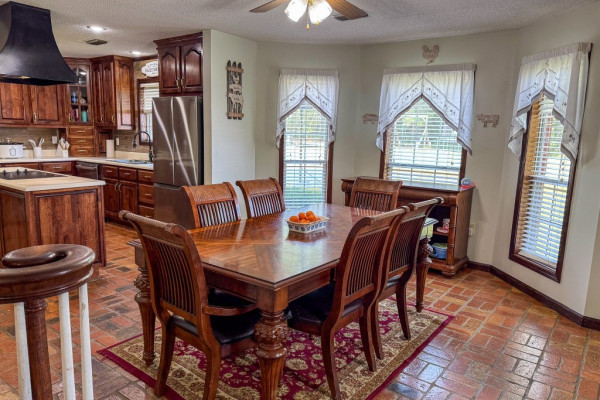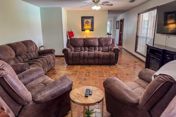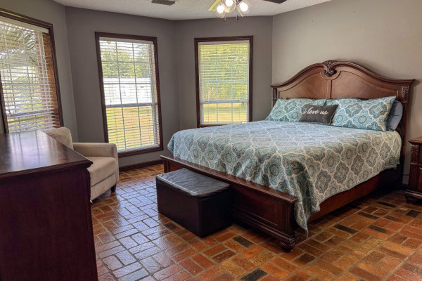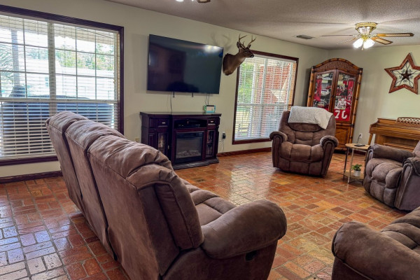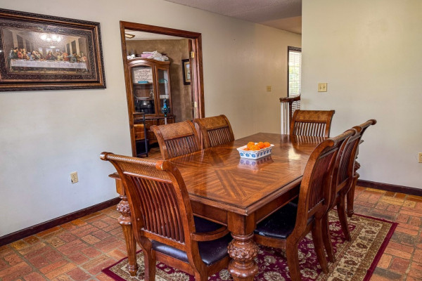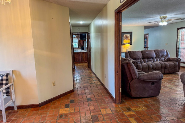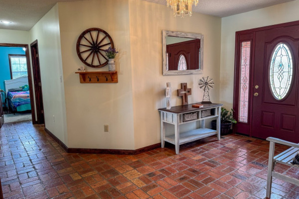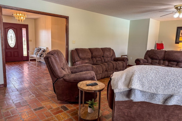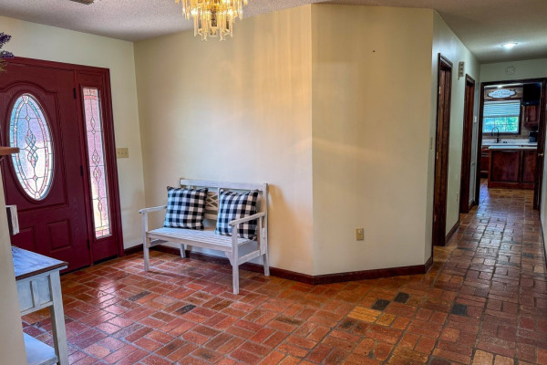 Step inside to find beautiful brick floors flowing throughout the home, adding warmth and timeless character. The spacious kitchen, dining, and open living area make gatherings a breeze, while the thoughtful layout offers both comfort and convenience.