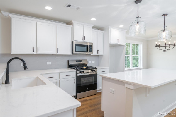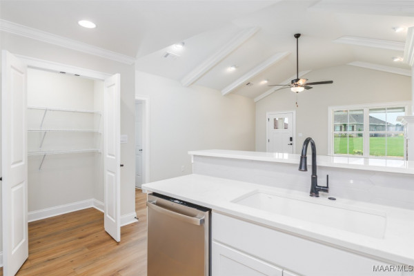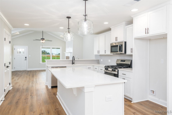 Simplistic and sensational, the “Kendrick” design offers fine details, all on one level with its attention to comfort and highly appealing use of space. Impressive great room with vaulted beamed ceiling and expansive space that offers a pleasant spot for family time or entertaining guests. Perfectly centered to the great room allowing open yet defined space, the kitchen is special in every way with granite island, custom cabinetry, and hardwood flooring. Separate primary suite allows privacy for the owner from the guests or other occupants of the house. Covered rear patio is great for an outdoor retreat. The two car garage completes the amenities to this all inclusive plan.