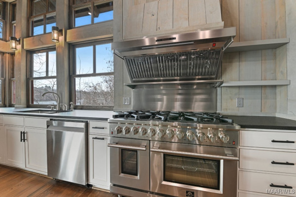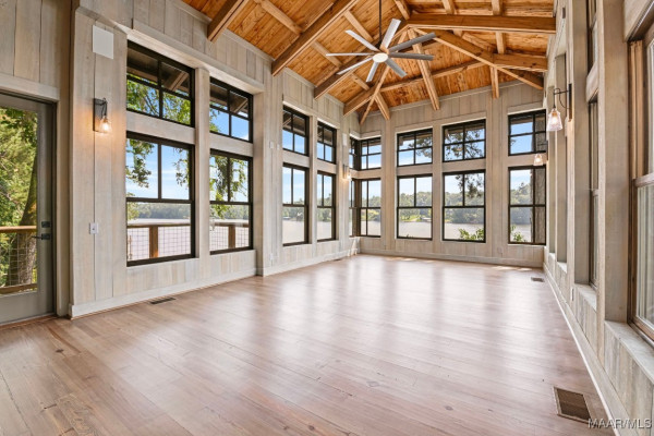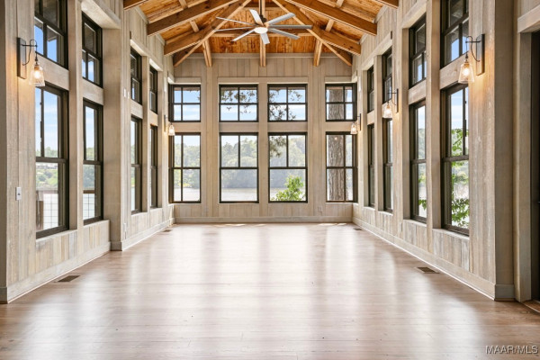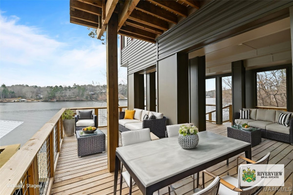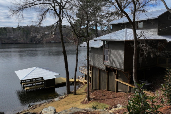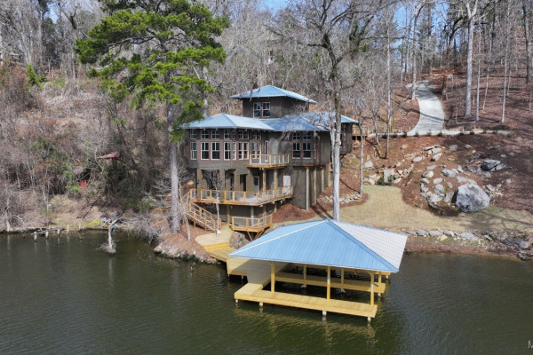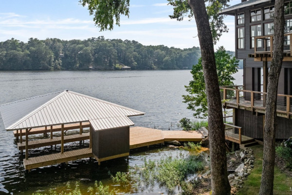 Step outside to an expansive deck with covered and open-air sections, a mini kitchen, and seamless access to your private boathouse, large enough for 2-3 boats, with dedicated storage. Designed for efficiency, the home features EcoFoil insulation, smart home technology (security locks, climate control, surround sound), energy-efficient LED lighting, and a durable metal roof.