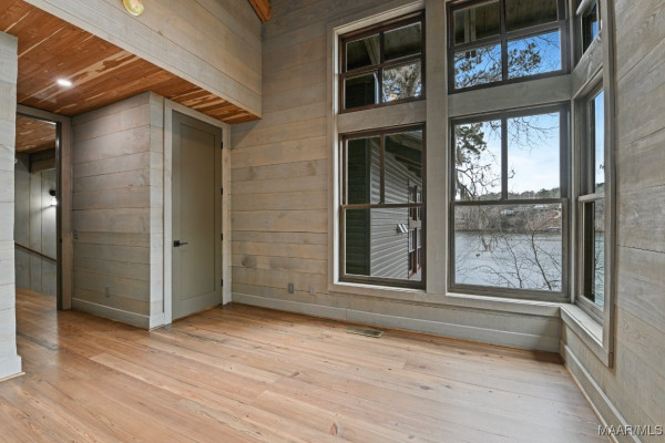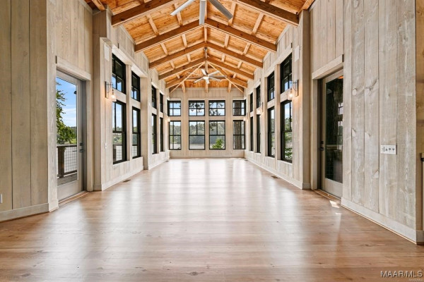 Nestled on the tranquil shores of Jordan Lake, this breathtaking 3,314 sq. ft. architectural masterpiece was custom-designed by an architect and completed in January 2025. Sitting just feet from the water on over an acre of private land, it offers unmatched lake views and an unparalleled living experience. Vaulted cedar ceilings with exposed beams complement antique reclaimed heart pine floors, while towering 16-foot ceilings create a grand, open feel, and panoramic windows fill the home with natural light.